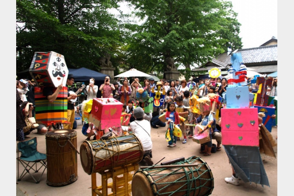 会場には、陶器、染色、布製品、革製品、木工品、ペーパークラフト、草木鉢、食品などのこだわりの品々のブースが並び、神楽殿や境内では朗読劇や音楽が演奏され、ワークショップが営まれ、子供たちが鎮守の森で作った段ボールのお化け行列もフィナーレを飾りました。