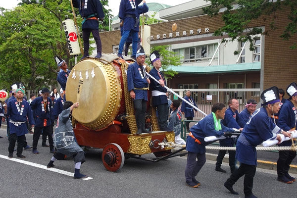 薫風の吹き渡る5月3日、大太鼓は10:30に境内を出発。
