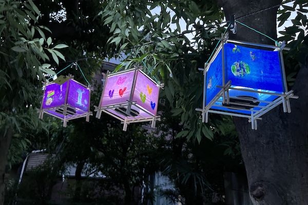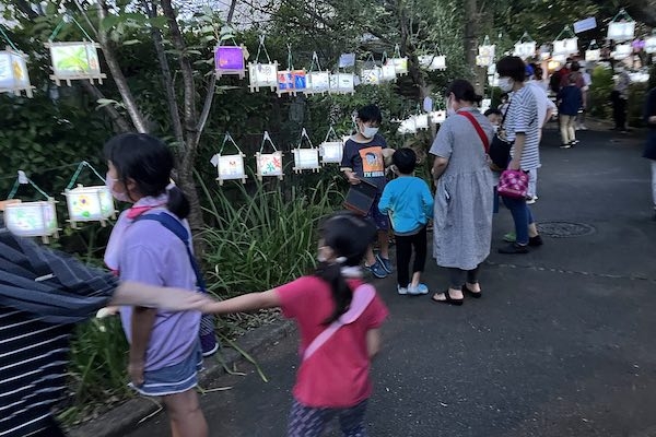 上井草自治会による「みんなで灯ろうまつり」の初開催(8/16) 。商店街もお手伝いさせていただきました。