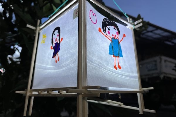 日暮れとともに絵灯篭、文字灯籠が点り、三々五々お集まりくださる地元のみなさまが鑑賞するお顔を、ほのぼのと照らします。