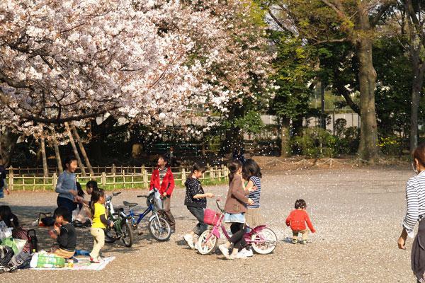 #527 落花を浴びる子供たち(4月8日撮影)。