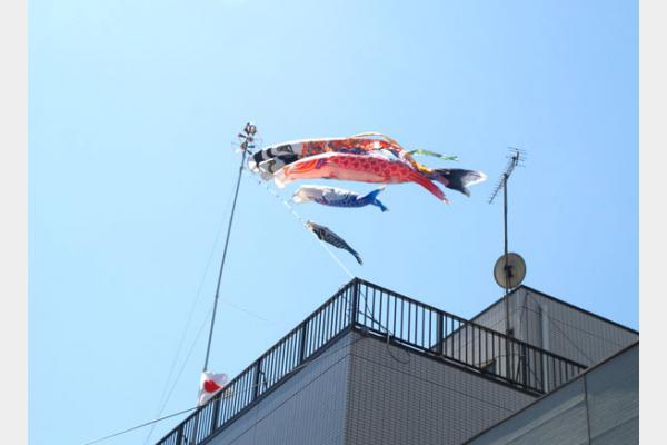 #529 商店街に泳ぐ鯉のぼり。