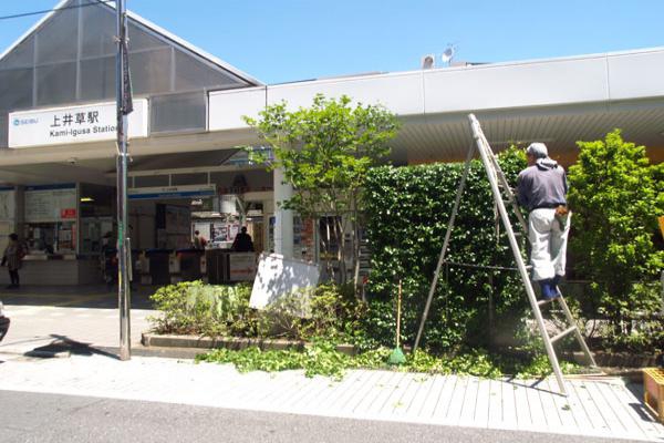西武新宿線・上井草駅植栽の手入れの費用も商店街が負担。