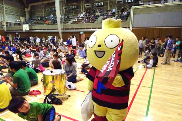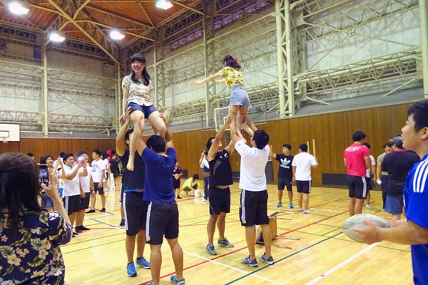 雨を避けて、会場は上井草ラグビーグラウンドから体育館内に変更。