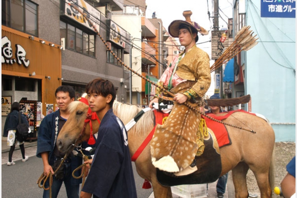 神幸祭の行列には、「源頼朝公」などに扮した人馬が加わります。