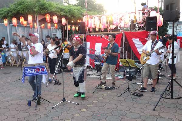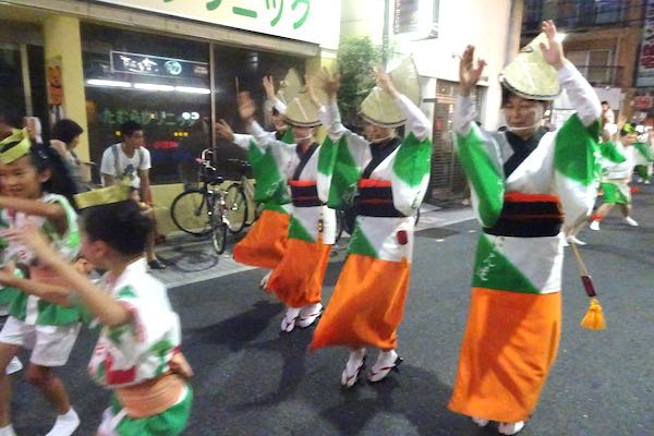 会場内に踊りの輪が生まれて間もなく、上井草駅前では、ゲストの阿波おどり「大根連」のお囃子が響き始めました。