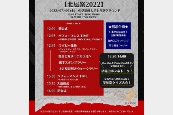 北風祭2022のタイムスケジュール