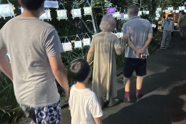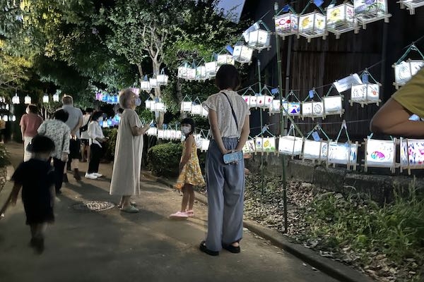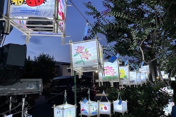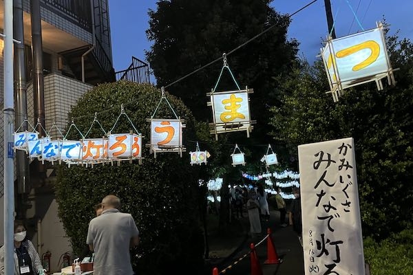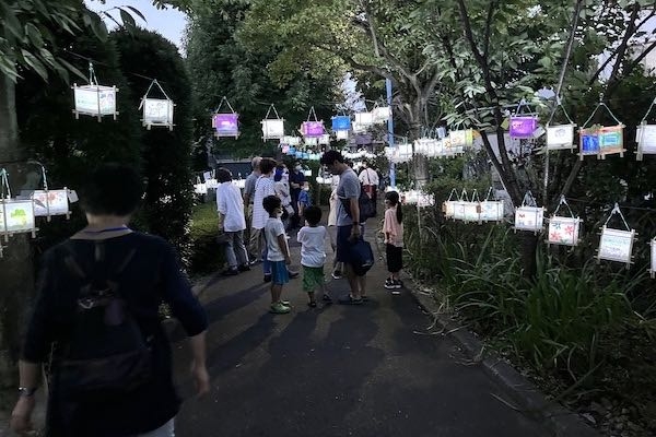 上井草自治会による「みんなで灯ろうまつり」の初開催(8/16) 。商店街もお手伝いさせていただきました。